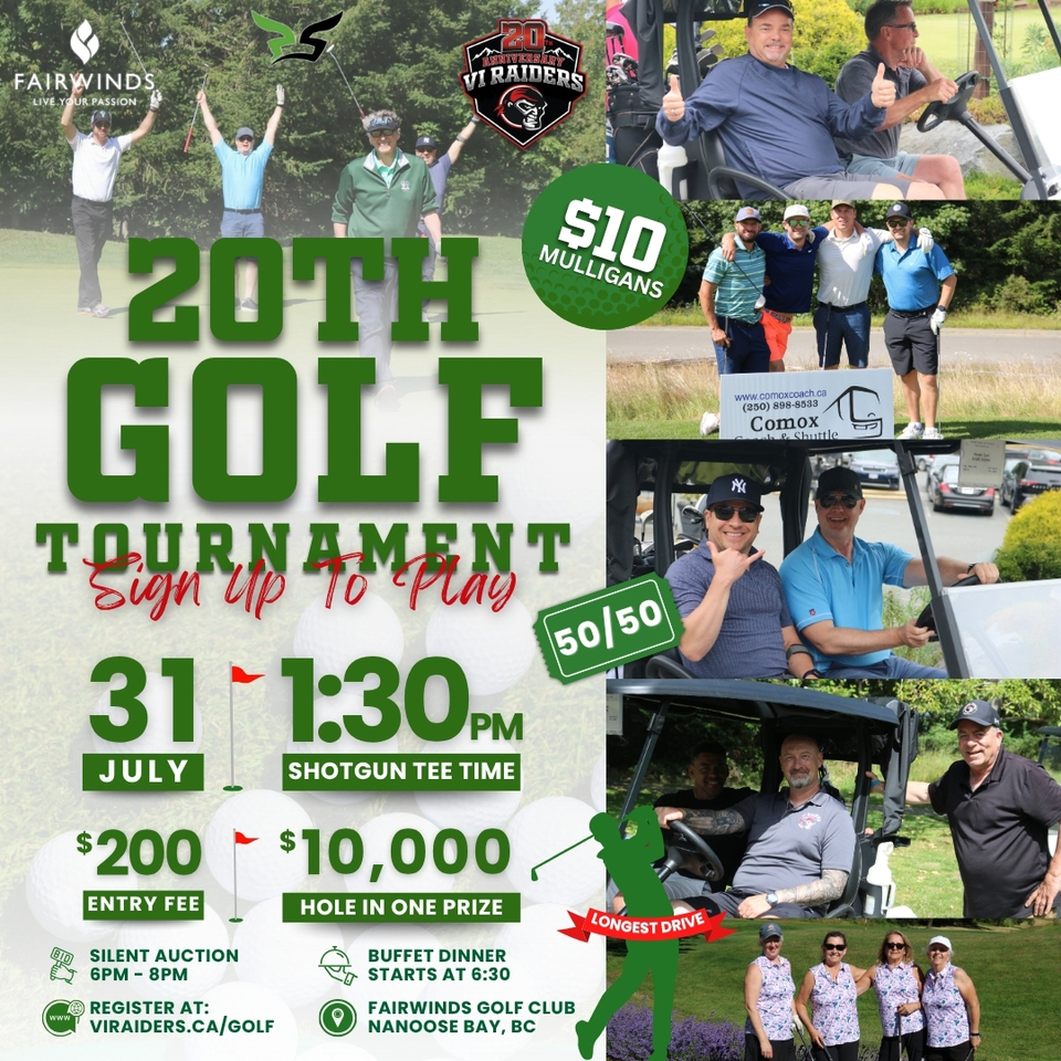 Join us for a day of golf, community, and celebration as we tee off the 20th Anniversary VI Raiders Invitational at the stunning Fairwinds Golf Club.